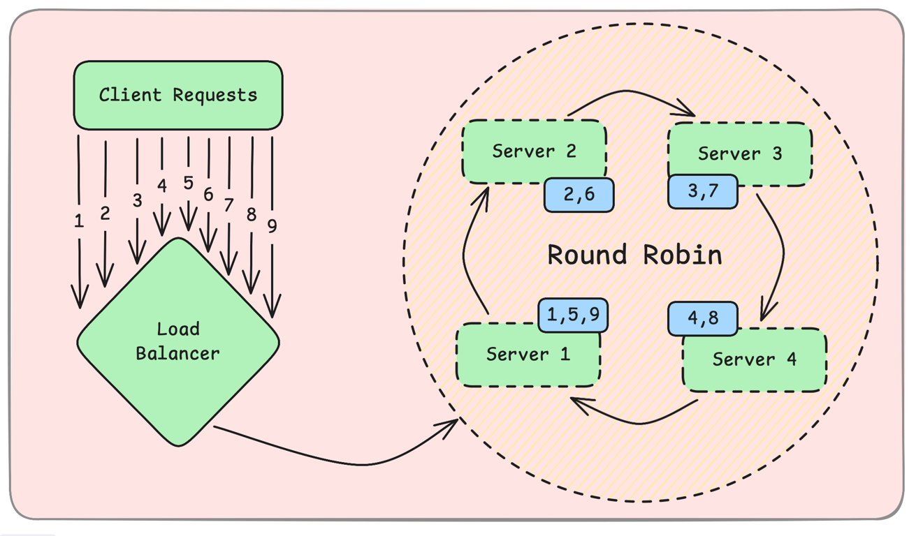 Cons:✖ Doesn't consider server load. ✖ Can overload a slower server.